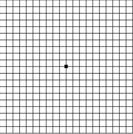 La métamorphopsie ou vision déformée est un signe clinique qui peut indiquer une lésion de la partie centrale de la rétine, connue comme la macula. La vision déformée peut se produire dans un grand nombre de maladies de la macula comme : Dégénération maculaire associée à l’âge Trou de la macula Membrane épirétinienne Œdème de la macula Chorio rétinopathie séreuse centrale Vasculopathies Inflammations intraoculaires L´ autoévaluation de ce symptôme de la part du patient est fondamentale car à partir du moment où apparait la métamorphose, ou celle-ci change par rapport à l´état de base, il est important d´aller chez l'ophtalmologue, pour contrôler le fond d’œil. Pour contrôler la métamorphose, nous recommandons l’utilisation du test de la grille d’Amsler. Il s’agit d’un carré formé de carreaux de petite taille, avec un point noir au centre. Si vous souhaitez réaliser ce test, vous devez vous cacher un œil avec la main et regarder fixement le point noir au centre de la grille. A ce moment-là vous devez être attentifs à la morphologie des carrés proches. Si les lignes sont déformées ou les carrés n’ont pas la forme correspondante, il est probable que vous ayez une métamorphose. Une fois réalisée l’examen avec un œil, vous devez le faire avec l’autre.