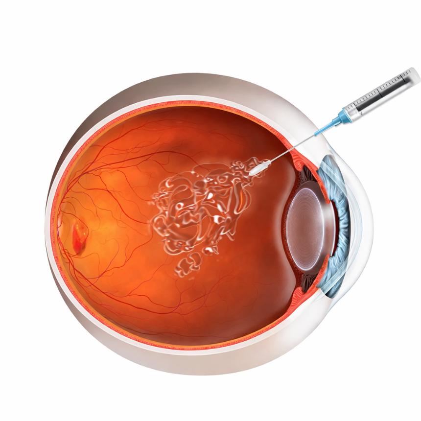 Una inyección intravítrea consiste en la administración directa de un medicamento dentro del ojo, específicamente en el humor vítreo, el gel transparente que ocupa el interior ocular. Este procedimiento permite que el fármaco llegue directamente a la retina y la mácula, donde actúa con máxima eficacia.
